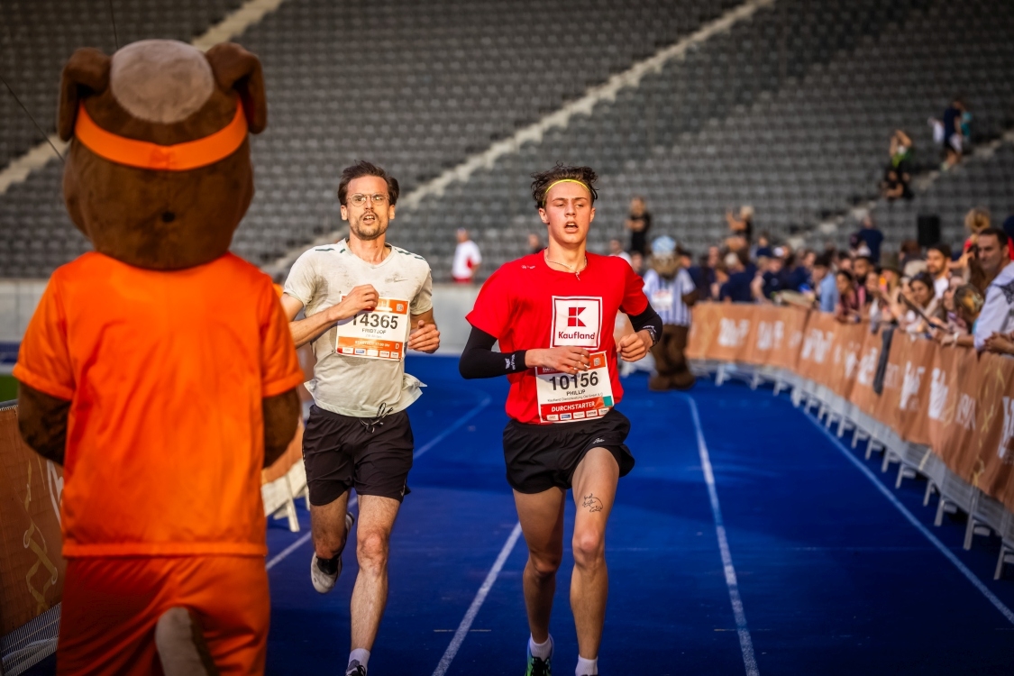 Der emotionale Zieleinlauf im Olympiastadion beim B2Run Berlin 2023 #gemeinsamaktiv