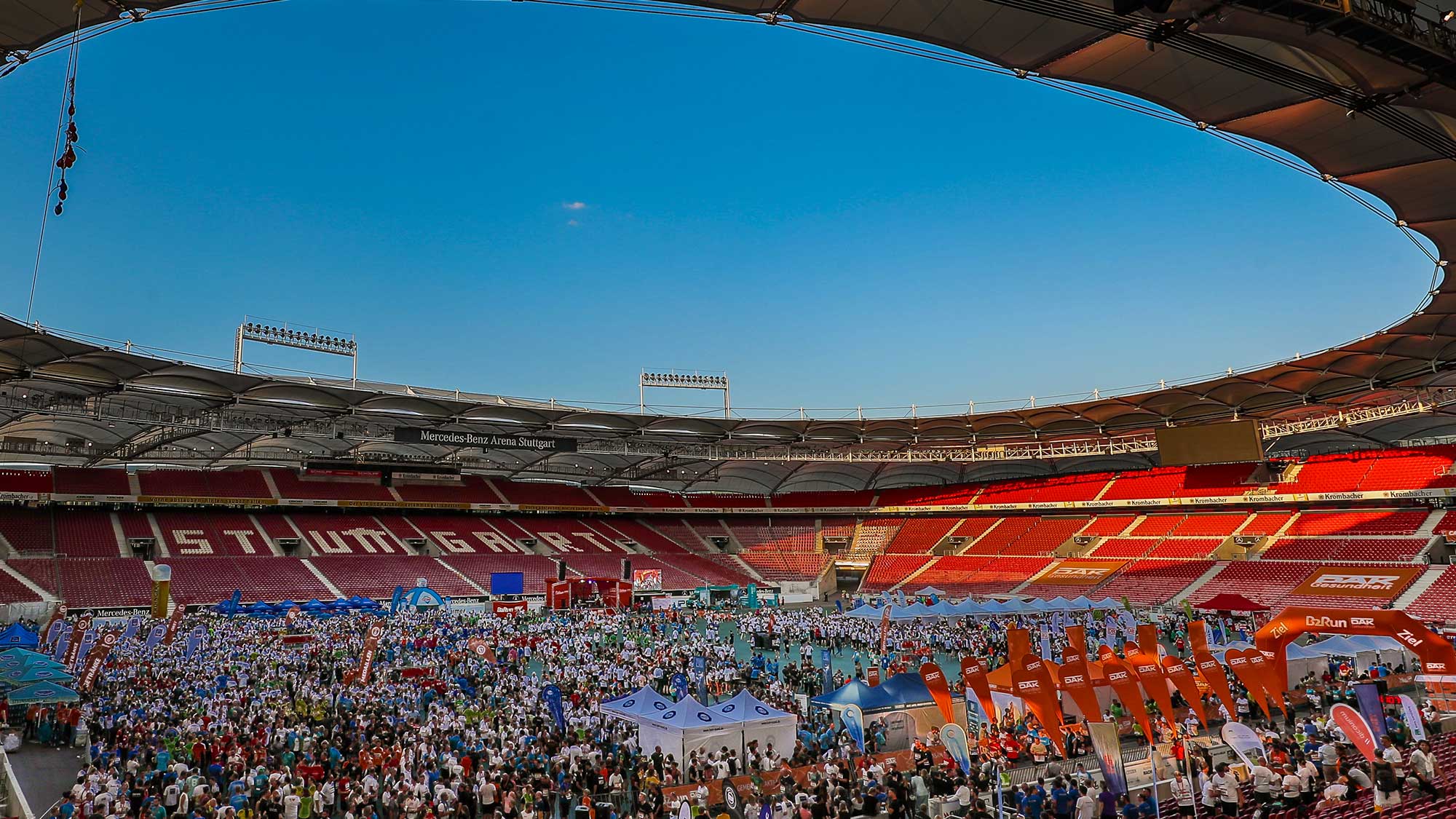 Top Bedingungen für die Läufer/-innen! Pünktlich um 18.30 Uhr gab Alexander Wehrle, Vorstandsvorsitzender VfB Stuttgart und Schirmherr des B2Run Stuttgart, den Startschuss bei angenehmen 26 Grad Celsius. In drei zeitversetzten Startphasen machten sich anschließend die insgesamt rund 3.900 Teilnehmer/-innen auf den rund fünf Kilometer langen Rundkurs, der auch für Hobbyläufer/-innen problemlos zu bewältigen war und quer durch den NeckarPark in Stuttgart‐Bad Cannstatt führte. Die Zuschauer/-innen sahen dabei herausragende Leistungen - die ersten Läufer:/-innen kamen nach nur etwas mehr als 16 Minuten in das Ziel.